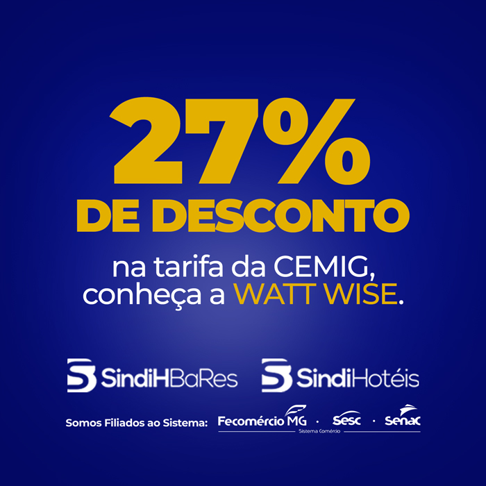 Com a assinatura gratuita da Watt Wise, os associados do SindiHBaRes / SindHotéis garantem até 27% de desconto na tarifa de energia. Para mais informações,
