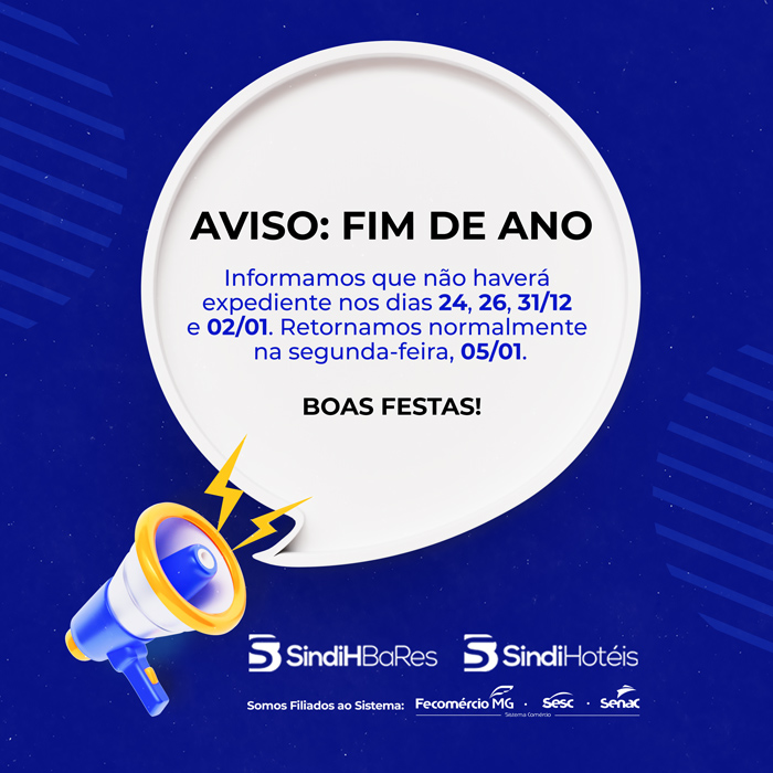 Informamos que não haverá expediente nos dias 24, 26, 31/12 e 02/01.